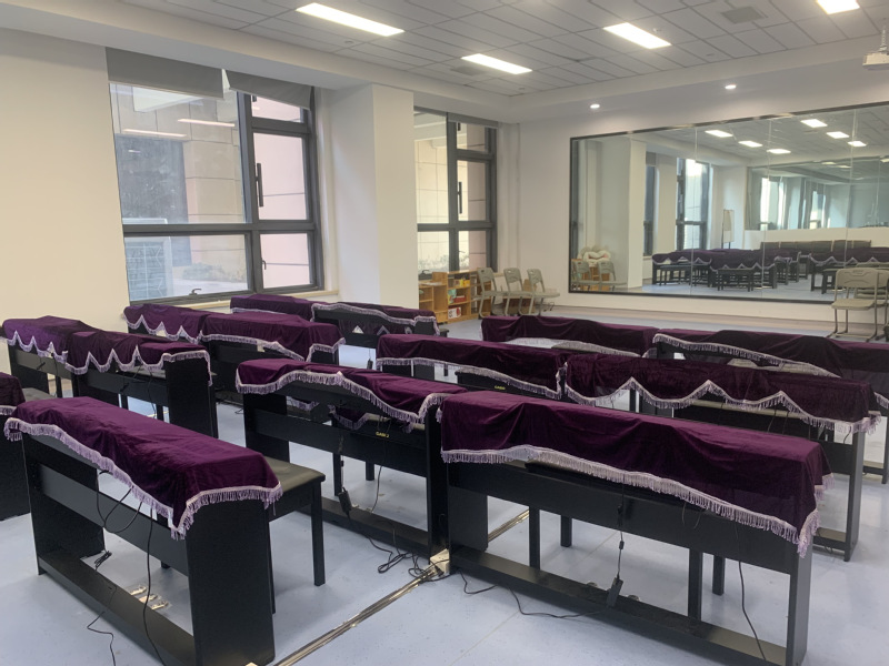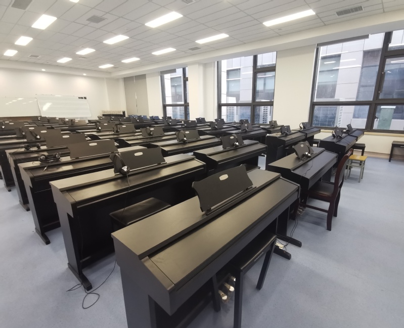 电钢琴实训室主要用于幼儿发展与健康管理专业和学前教育专业员工进行钢琴专业技能的集中教学。设有钢琴演奏技巧、钢琴即兴伴奏、钢琴键盘等课程,通过教师演示讲解、员工独奏、合奏、齐奏等形式,提高员工的钢琴演奏水平、即兴伴奏能力及合作意识。 实训室集视,听,练为一体满足《声乐》《钢琴基础与婴幼儿歌曲弹唱》《学前教育专业技能大赛儿歌弹唱》等项目和课程的实训。这里面主要配置了钢琴和电钢。通过教学与实训,员工掌握儿歌弹奏、伴奏、弹唱等相关技能。