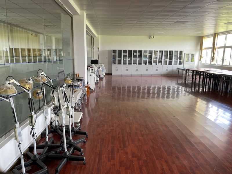 实训设施有PT训练床、PT凳、上肢关节康复器CPM、下肢关节康复器CPM;进口等速肌力训练仪,颈椎,腰椎牵引床、空气波压力治疗仪、神经肌肉低频电刺激仪、经皮神经电刺激治疗仪、超声波治疗仪、电动颈椎牵引机,深层肌肉刺激仪等各种康复设备100余件。能同时提供《物理治疗技术》、《临床康复学》等课程的实训平台,实现了各门核心技术课程的理实一体化教学。目前开设实训项目有:被动活动、关节松动技术、平衡、协调训练、体位摆放、体位转换训练、转移训练、行走训练、呼吸训练、牵引、Bobath技术、Brunnstrom技术、PNF技术、Rood技术、上肢、口面部功能训练、坐立训练、行走训练等。通过实训使员工熟悉和掌握物理治疗技术,进一步提高理论水平和实际操作能力。
