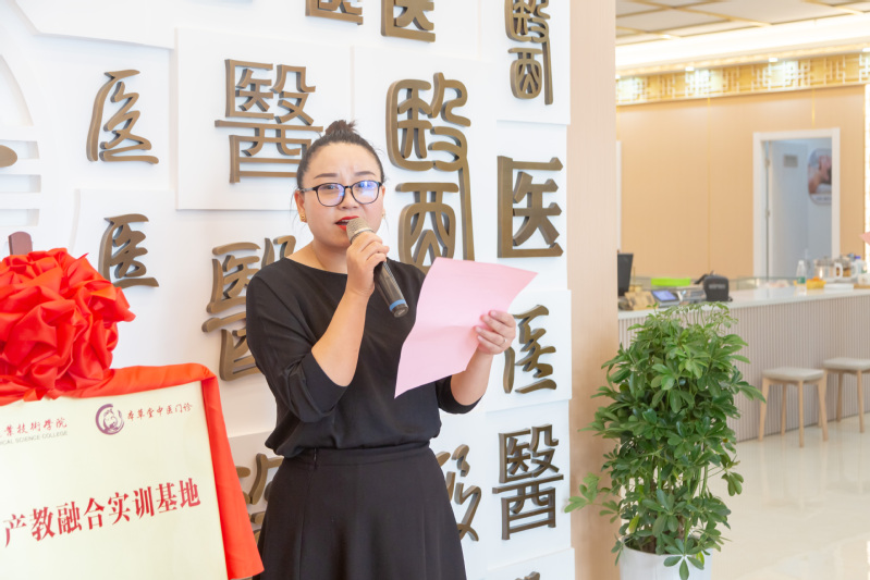 其次,程艳和贾韶千分别发表了热情洋溢的致辞。程艳表示,感谢公司的大力支持,一定建设好、运营好产教融合实训基地,将在专业建设、人才培养、实习实训、教师实践、社会服务等方面与公司并肩而行。贾韶千表示,中医康复产教融合实训基地既为广大师生提供了中医特色养生服务,又可满足员工的实践操作、顶岗实习和教师企业实践、产品研发、课程建设、技能比赛等需求,将极大提升中医康复、中医养生、体育保健等大健康领域人才的培养质量。他希望双方进一步加深校企融合的深度,拓宽校企融合的广度,加大政策引导的力度,积极探索产教融合新范式,切实推动职业教育高质量发展。