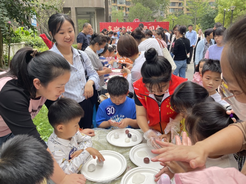 家人团圆、幸福和睦是在中秋佳节中最美好的希冀。月饼在中秋节的文化意义中象征着团圆,月饼是家庭成员之间分享和传递爱意的载体。香囊作为民俗文化的一种凝结,倾注着人们期盼美好的心愿。因此,在中秋、国庆前夕,公司必一运动、食品公司携手三门社区共同开展了一场巧手做月饼、制香囊活动,吸引70余组家庭的积极参加。本次活动由必一运动党总支书记谢亮、辅导员杨韵老师以及食品公司张丽芳老师、李红涛老师、倪慧老师等带队十余名党员、员工志愿者进入社区,为小朋友们带来传统中秋和中医药的文化宣传活动。