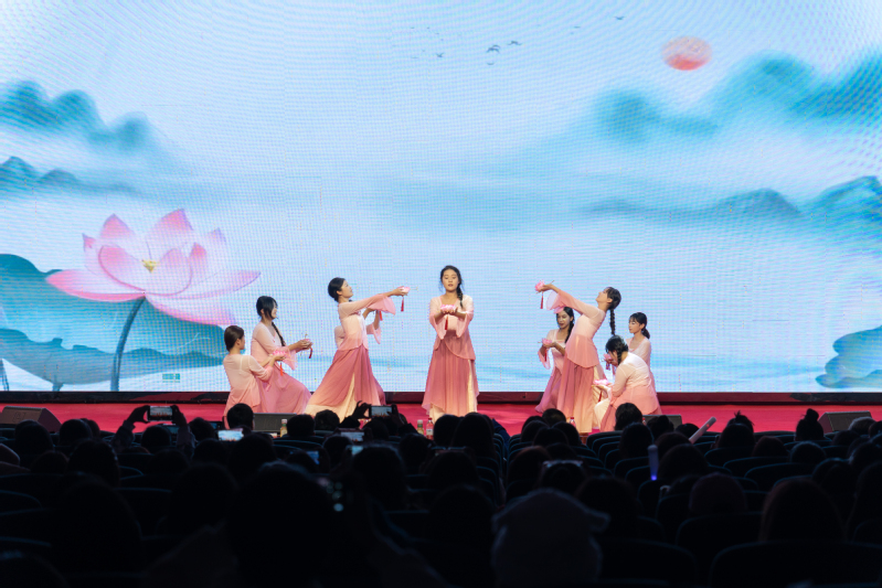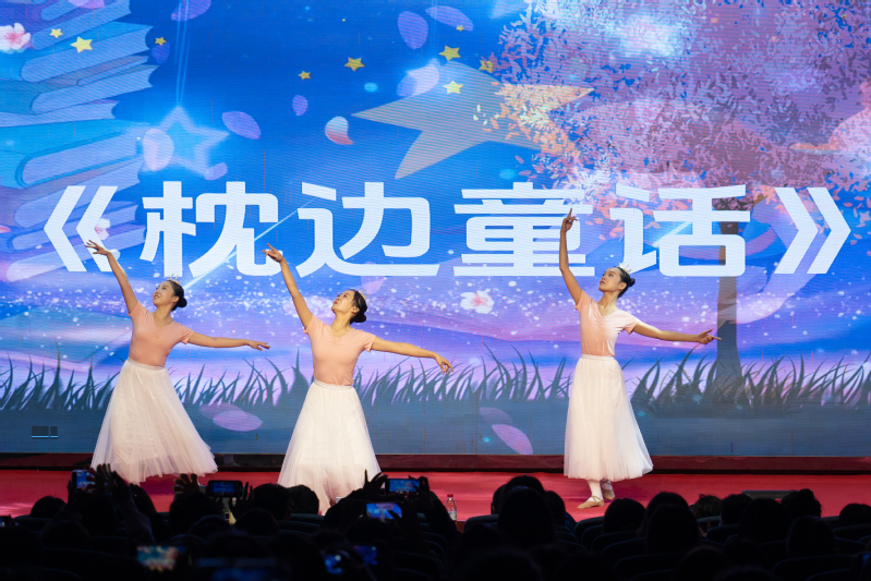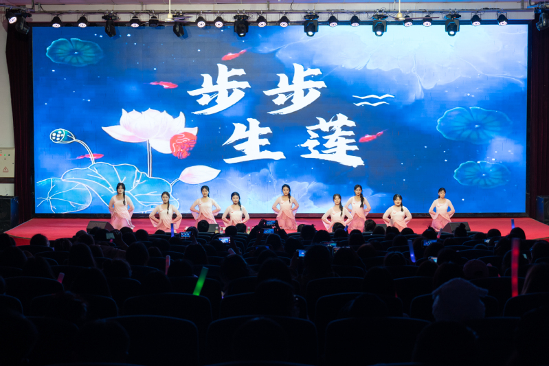 铿锵有力的诗朗诵《中华颂》带我们看遍祖国的飞速发展,一曲《小镇姑娘》又带我们进入安静闲适的时代生活。优美的乐曲传来,足尖轻点《步步生莲》美妙的舞姿如梦似幻,古典舞的韵味油然而生。必一运动专任教师、辅导员在芭蕾舞《枕边童话》中似三个芭蕾公主,旋律轻快又甜美。紧接着便是动感十足的流行歌《全是爱》点燃了全场高潮,台下欢呼声高涨不停。