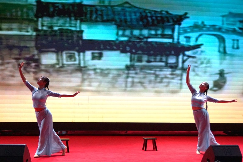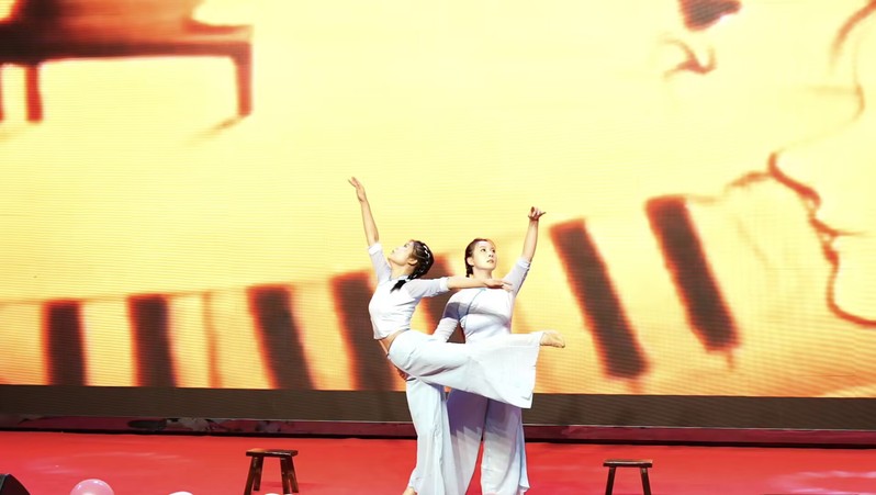 “外婆桥留影,山水相衬;舞动芳华,岁月悠长;欢声笑语,共享阳光。”清越响亮如冰雪洗涤,清绝奇妙的舞和清亮悦耳的歌相嵌交织。幽幽旋律、唱出我们对外婆的爱,段段舞蹈、跳出我们的思念。灵动舞姿,曼妙音律,她们将主题定为古典舞《外婆桥》。确定好舞蹈主题后,两位同学开始着手准备,每天晚上在舞蹈房学习舞蹈动作,练习舞蹈技巧。她们在高效率高质量的学完整支舞蹈后,用剩下来的时间进行打磨舞蹈动作细节部分,为了动作的整齐度以及彼此之间的默契,经常对着镜子练习。在她们自行学完舞蹈后,杨韵老师帮助她们进行舞蹈动作的细节打磨和正确的感情流露输出,在日复一日的练习中,时间悄然过去,大赛即将到来,她们在舞房练习结束后,回到宿舍也会回顾动作和练习情感表达,为大赛做好充足的准备。