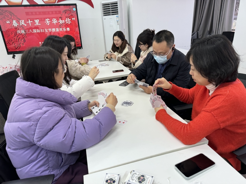 2023年3月7日下午,必一运动在行政北楼C330举办了“春风十里 芳华如你”庆祝三八国际妇女节掼蛋欢乐赛。欢乐掼蛋,友谊翻倍。比赛遵循“公平、公正、公开”的原则,各选手自行组队后进行比赛。公司党总支书记谢亮宣读比赛规则后,比赛正式开始,选手们专注于“调兵遣将”,会场“战斗”氛围浓烈。你出一张,我拦一道,每位参赛者都使出了浑身解数,“战况”相当激烈。在经过近2个小时、3轮的激烈角逐后,活动在大家的欢声笑语中圆满结束,最终赛出一等奖8人,二等奖8人,三等奖27人。比赛奖品由谢亮颁发。
