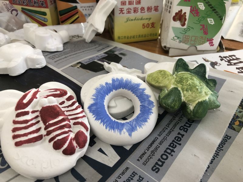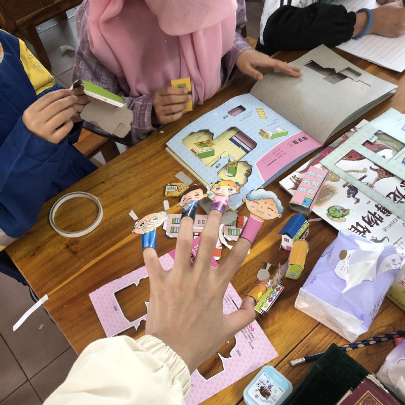在公益服务的前期,2023年,公司的同学关注社区需求,将服务对象放在有课业辅导需求的家庭,辅导对象的年级分别是从小学一年级到初中三年级的跨越,共30个员工。社区为他们提供辅导作业的教室,公司的同学化身为两拨小老师们,上午为小员工辅导作业,下午为初中生辅导作业,并希望通过辅导,让他们能做到“课内查漏补缺,课外博览群书”。除了学科辅导外,我们还额外增加许多兴趣班的辅导,如画画课、手工课、石雕上色、折纸、读书等,另外还有一些增强锻炼的体育项目,如羽毛球、乒乓球和跳绳等。