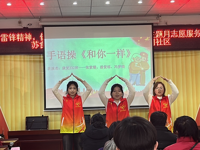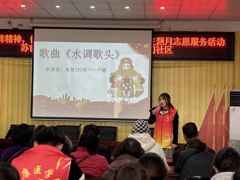 其次是“锋”华少年主题下的两项活动。歌曲《水调歌头》里的“但愿人长久,千里共婵娟……”唱出了人们对于美好生活的向往;舞蹈《学习雷锋好榜样》,表演同学用动人的舞姿为大家展现出雷锋精神的新气象;手语操《和你一样》,同学们用双手传递温暖,用手语表达爱,为大家展示出青年一代的雷锋新面貌;春季阳气升发,易出现精神不振等症状,为此志愿者们为社区的居民准备具有消菌杀毒防疫作用的橘皮艾绒制作方法,可以起到调和阴阳,增强机体免疫力,有益于我们的身体健康。