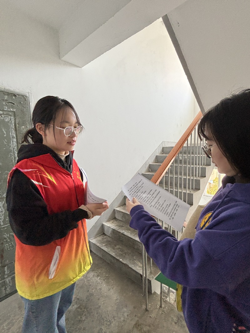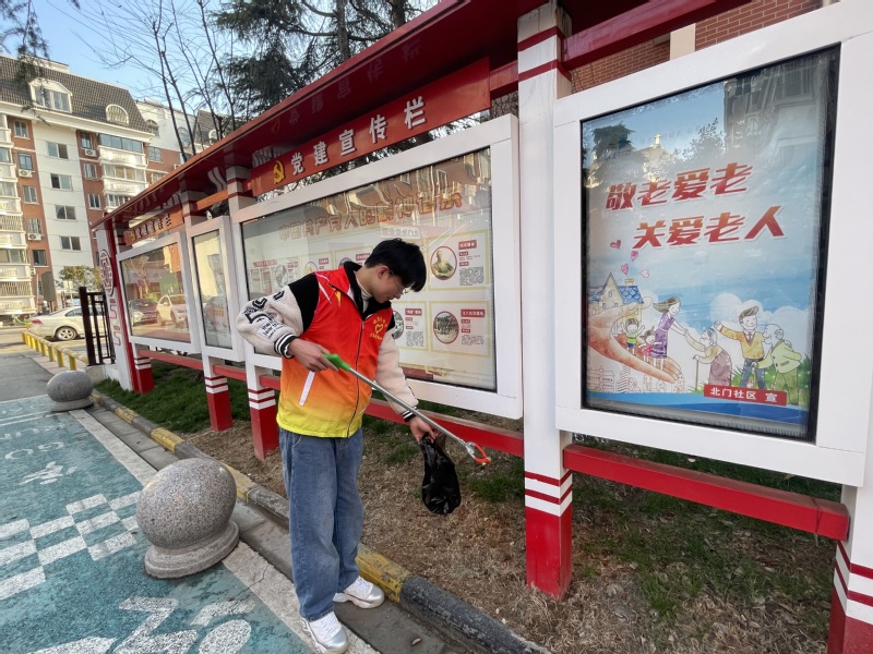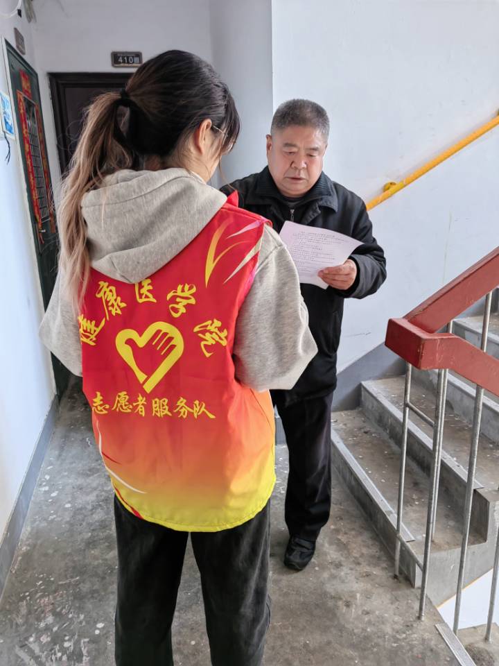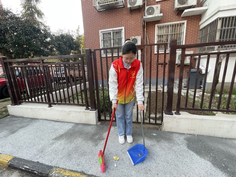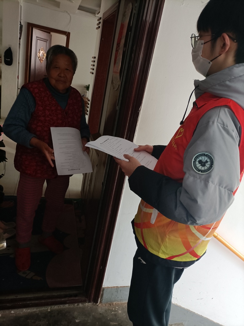 最后是春“锋”入社主题的三项活动。志愿者们分为8组,3-4人一组,分别前往2个小区,面对面、挨家挨户地向居民发放有关安全防患、春季养生的调查问卷,耐心引导居民填写调查问卷,为社区居民们送去温暖,进行疑难解答。紧接着,志愿者们跟随老师以及社区负责人带着具有苏食院特色的公司烘焙车间的营养糕点前去看望贫困独居老人,与老人亲切交谈,了解他们的生活状况及健康情况,向他们传递温暖与关怀,时刻关注我国老年人规模日益增长的问题。活动结束后,志愿者们主动留下,齐心协力打扫卫生,营造干净、整洁、有序、安全的社区环境,为社区环保贡献出属于自己的一份力量。