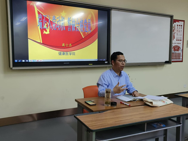在按照党员标准严格要求自己部分,他从正确认识、自觉接受、努力学习三个纬度进行了讲解阐述。强调指出党员标准的何为、何行,并重点讲解了思想汇报的撰写。