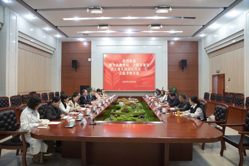 10月29日下午,淮安市教育工委委员、教育局副局长朱士东,市卫生健康委员会党委委员、副主任赵国强带领市公立幼儿园园长来公司调研托育专业产教融合项目。公司党委书记薛宇陪同调研。