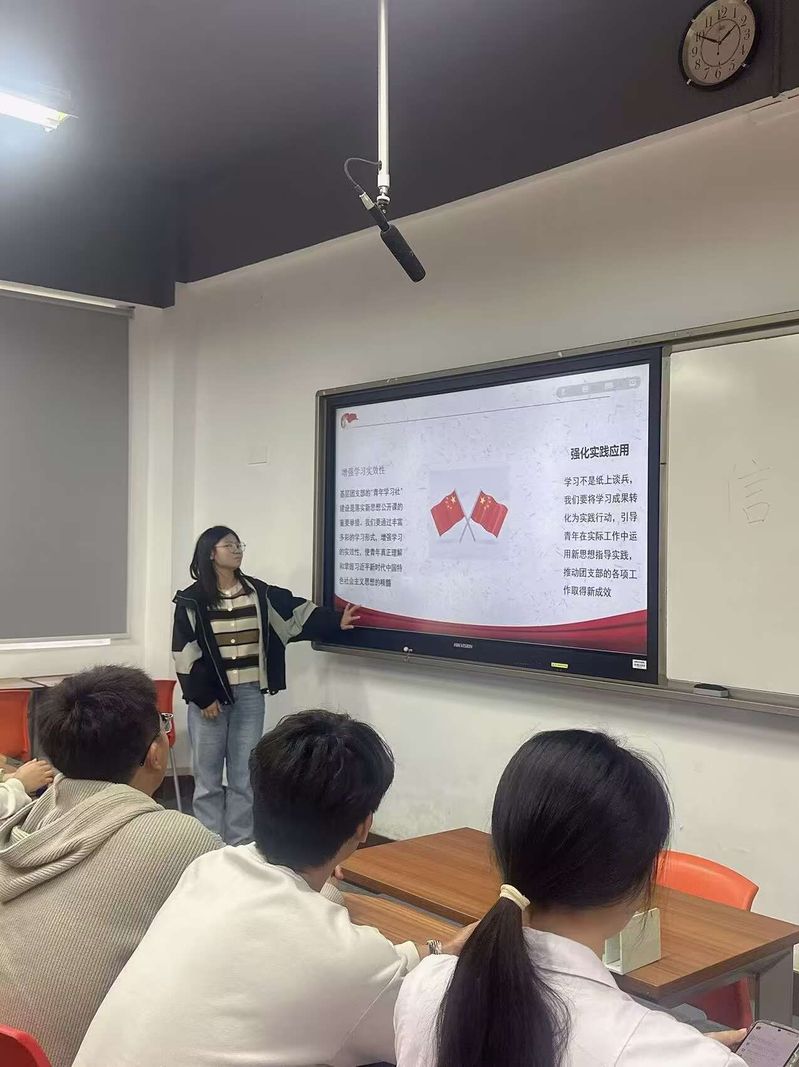 接着,赵苏莹同学在公开课上热情展开“助燃信仰,引导青年坚持用社会主义核心价值观凝心聚力”的讲解,她将“诵读学传”活动作为培育和践行这一价值观的重要载体,通过诵读先贤、英雄、模范的事迹,以激发青年的爱国情怀和励志精神。她强调,青年应忠诚坚定,奋发图强,用实际行动践行社会主义核心价值观。她鼓励大家以诵读为媒介,学习传承中华民族优秀传统文化,将其内化于心、外化于行。在她的引导下,同学们纷纷表示要以此为契机,积极投身于社会建设,以中国式现代化全面推进强国建设、民族复兴。