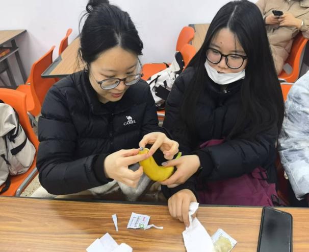 活动开始,由吴文荻讲解艾滋病相关知识,从它的危害性,到传播途径和预防等方面进行了细致讲解。然后谈到校园恋爱问题,引导同学们探讨正确的恋爱观。爱情应助力共同成长,处理好恋爱与学业等关系,以学业为重,恋人设共同目标,保持独立又尊重信任,积极融入集体。活动最后,社团精心策划了避孕套的实践环节。志愿者统一分发避孕套和香蕉,主持人现场指导同学们正确佩戴避孕套。这一环节不仅增加了同学们的避孕知识,还提高了大家对安全性行为的重视程度,倡导健康、负责任的生活态度。