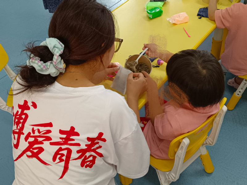 彭毛切吉同学化身“超有耐心的大朋友”,手把手教孩子们制作中药香囊。孩子们在志愿者的帮助下,睁着好奇的大眼睛认真学习,小手笨拙却又专注地做着。活动结束,孩子们将香囊挂在床头:“蚊子再也咬不到啦!”